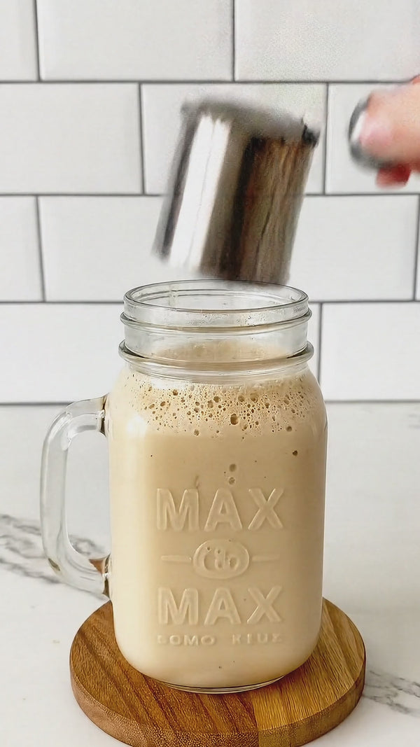 Nous recommandons de mélanger le café protéiné à un liquide chaud ou froid comme base (eau ou lait selon les préférences) et de le mélanger dans un shaker ou à l’aide d’un mousseur.